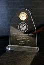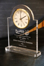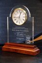 Trofeos y Testimoniales en Acrílico con base de acrílico y madera - Trofeos de Vidrio Cristal - Testimoniales con reloj embutido y sobrepuesto